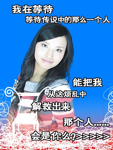 我是一個很活潑的女孩,不算漂亮,希望找個人來照顧我,我要的愛情很簡單,平平淡淡就好。。